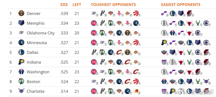 并且掘金剩余赛程难度仍是联盟第一,在西部竞争激烈的前六排名争夺中,掘金队不能有丝毫的松懈,否则排名只会进一步下跌。